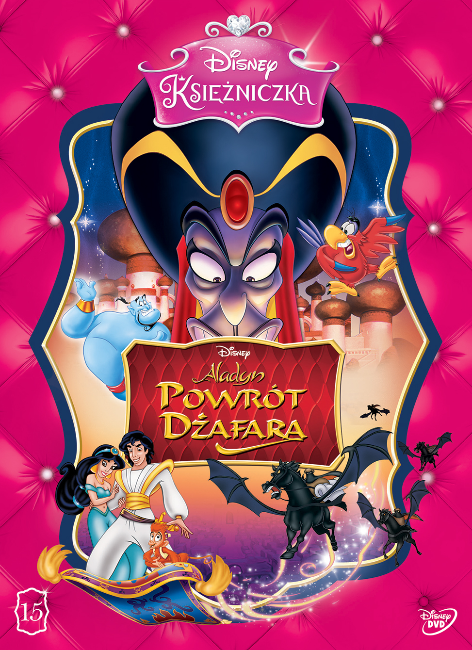 | Raz jeszcze odwiedź zaczarowane miasto Agrabah i przeżyj nowe, fascynujące przygody wraz z Aladynem, Dżasminą, Dżinem i całą resztą niezwykłych bohaterów Disneya, oglądając film Aladyn: Powrót Dżafara”! Historia rozpoczyna się w chwili, gdy zły Dżafar ucieka z magicznej lampy i jako potężny nowy Dżin planuje zemstę na Aladynie. Bohater będzie musiał stawić czoła nieuchwytnym najeźdźcom na skrzydlatych koniach i zmierzyć się z piekielnymi ogniami, a w walce pomogą mu ukochana księżniczka Dżasmina i stary, dobry, wesoły Dżin. Czy jednak uda im się raz na zawsze uratować zagrożone królestwo? Porywająca muzyka i pasjonująca fabuła w połączeniu ze sporą dawką humoru, miłości oraz wzruszeń sprawią, że druga część przygód Aladyna z pewnością przypadnie do gustu tobie i całej twojej rodzinie! | |