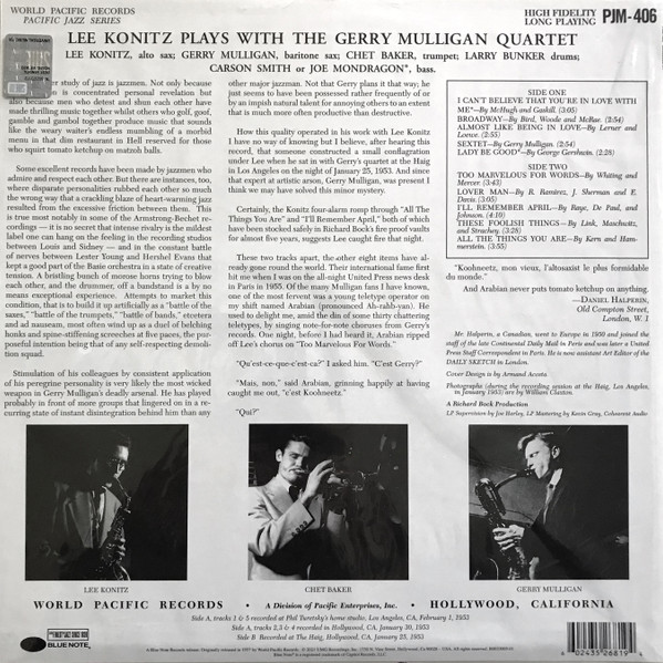 Lee & Gerry Mulligan Konitz - Lee Konitz Plays With The Gerry Mulligan Quartet (tone Poet) (lp)