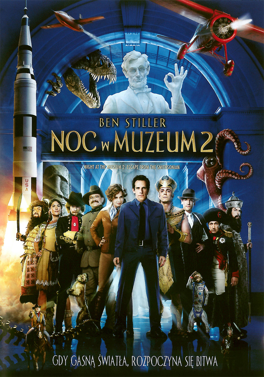 | Historia jest potężniejsza niż życie -raz dwa razy śmieszniejsza - w tym monumentalnym sequelu komediowym, który jest jeszcze zabawniejszy niż jego poprzednik. Ben Stiller przewodzi doskonałej obsadzie (Amy Adams, Owen Wilson, Hank Azaria i Robin Williams) jako Larry Daley, były strażnik Muzeum Historii Naturalnej, w którym po zmroku eksponaty budzą się do życia. Tym razem nocni przyjaciele Larry'ego zostają przeniesieni do zbiorów Instytutu Smithsona, gdzie wciągają go w prześmieszną, pełnowymiarową wojnę przeciwko zrzędliwemu, egipskiemu Faraonowi, który planuje nie tylko przejąć kontrolę nad muzeum... ale również zdobyć władzę nad światem. | |