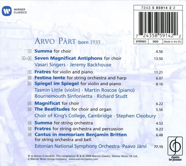16. Cantus In Memoriam Benjamin Britten (For String Orchestra And Bell) 6:48 | |